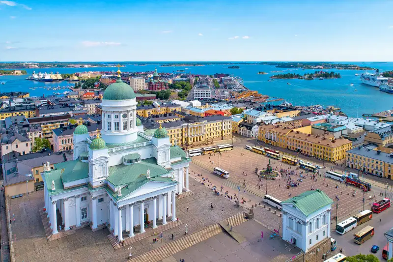 Hesinki stamt uit het jaar 1550, maar tot het begin van de negentiende eeuw is Helsinki een onbelangrijk kuststadje gebleven. Dat veranderde toen de Russen in het jaar 1812 de hoofdstad verplaatsen van Turku naar Helsinki. Vanaf dat moment groeide Helsinki snel. Helsinki staat bol van de moderne architectuur vermengd met andere stijlelementen. Sommige wijken bestaan bijvoorbeeld grotendeels in uit Jugendstil gebouwen. De stad is gebouwd op vooral onregelmatig gevormde eilanden, waardoor de stad een afwijkende structuur heeft. Zo zijn er meerdere havens, is er geen echte rondweg en telt Helsinki een groot aantal bruggen. Het centrum is wel redelijk afgebakend, maar een deel van de cultureel en recreatief belangrijke gebouwen ligt buiten het centrum. Helsinki is tegenwoordig een stad met een hoge levensstandaard. Finnen lopen op veel gebieden voor op de rest van Europa, onder andere op het gebied van technologie maar ook op het gebied van onderwijs, de medische zorg en wetgeving.