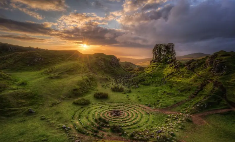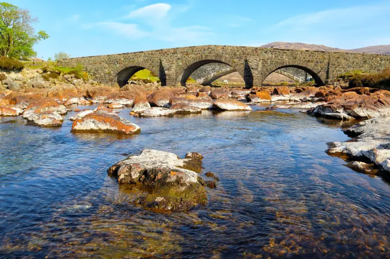 Op Skye komen we al snel bij de river Sligachan met de Old bridge, vervolgens het pittoreske Portree om vervolgens naar de bijzondere rotsformatie the Old men of Storr richting Uig te gaan, en de fairy Glen stone circle bij castle Glen vinden we ook in deze omgeving.
